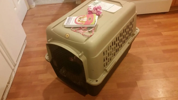 Crates include food, water, and potty pads to ensure your puppy stays clean and comfortable.